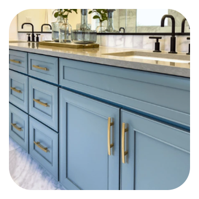 Swap out faucets, cabinet pulls, shower controls, and other vanity features.